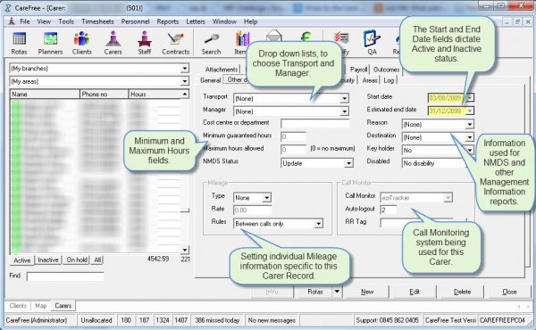 The Carer Screen acts as an information store for all the information you need relevant to your Carers and any other staff that you wish to have on the system.