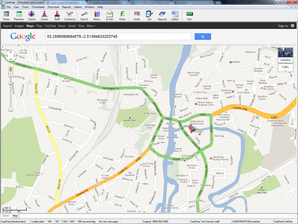 Postcodes are important. It is a good idea to check the postcode by clicking on the green push pin located to the side of the Postcode field. This will then open MapPoint or GoogleMaps to show the location that the postcode refers to.