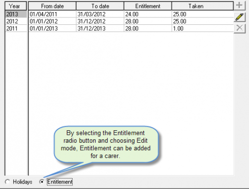 The lower of the two areas however is used to record holiday entitlement for a Carer.