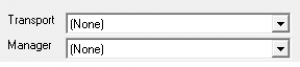 Fields such as the Transport and Manager have the option to select a response from a drop down list.