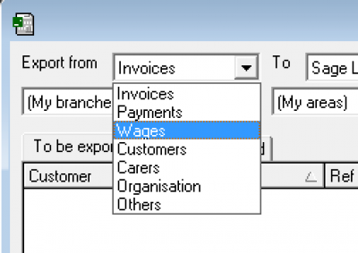 You can export wages to a number of different accounts packages, but the Sage Payroll export is described here. Note: wages must be finalised before they will appear in the export list.