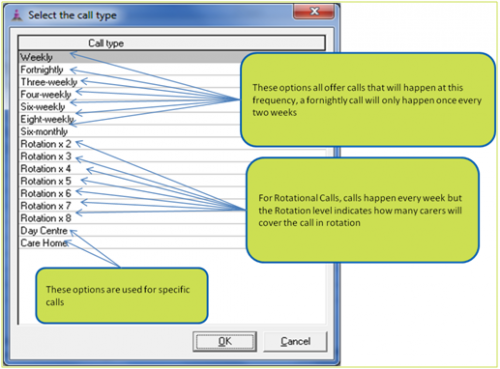 Selecting the correct Call Type allows the call to appear in the correct manner going forward in the Rota.