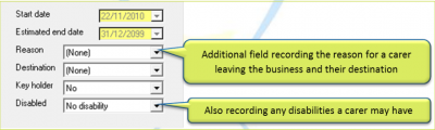There are a number of fields on the Carer Screen that record information for the NMDS. On the Other Details Tab fields now record the reason for an employee’s departure as well as their destination